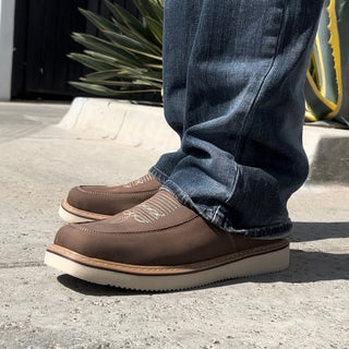 Country Flex 6' Brown Double Zipper Work Boots for Men Soft Toe Leather Wedge Sole